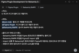 이에 BMPR 파일 개발문서와 Figma 플러그인 개발문서를 프롬프트로 제공하며,