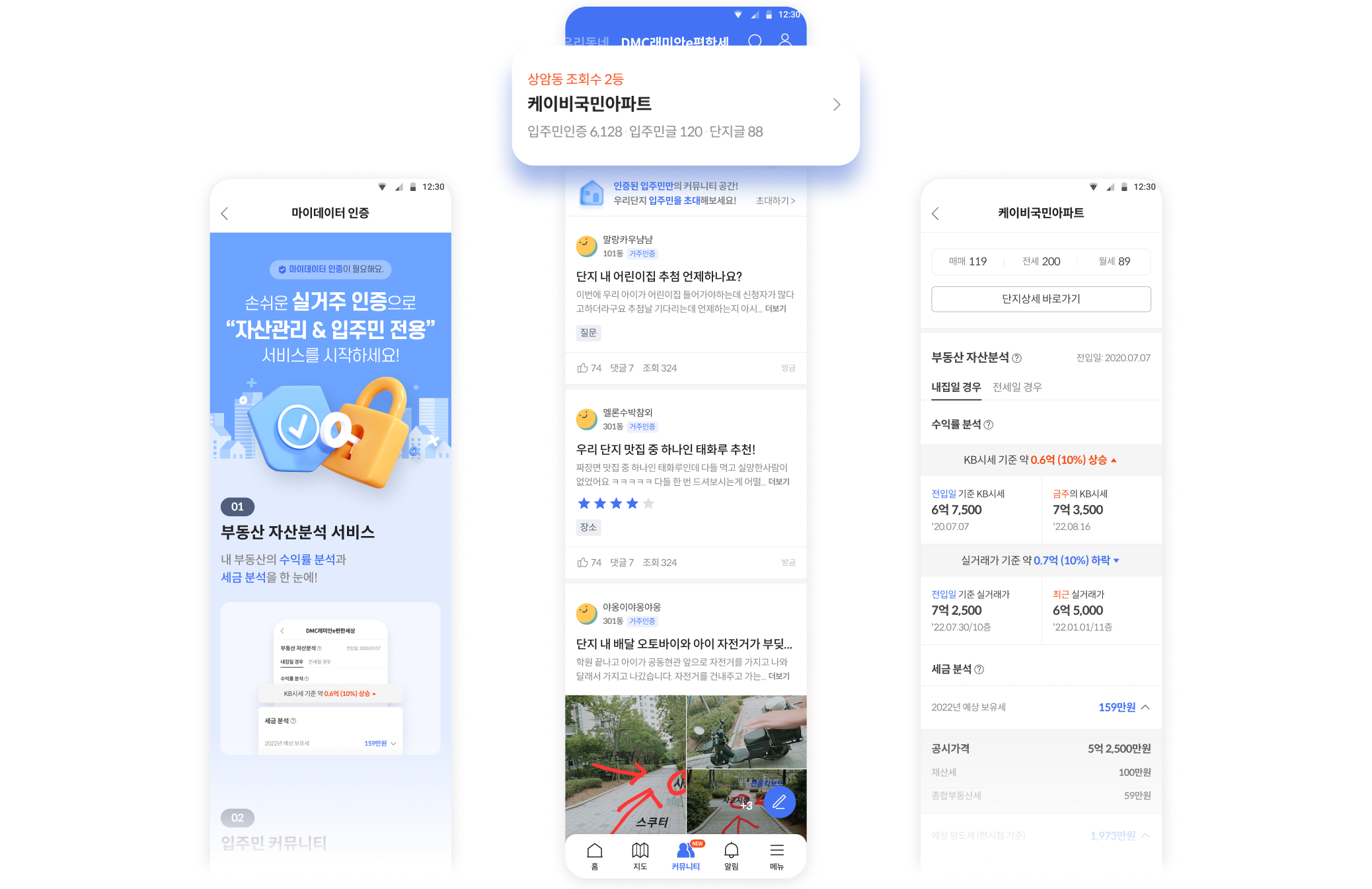 입주민 전용 게시판에서 단지 매물과 자산분석 정보를 함께 제공하여 보다 차별화된 입주민 공간을 경험하게 됩니다.