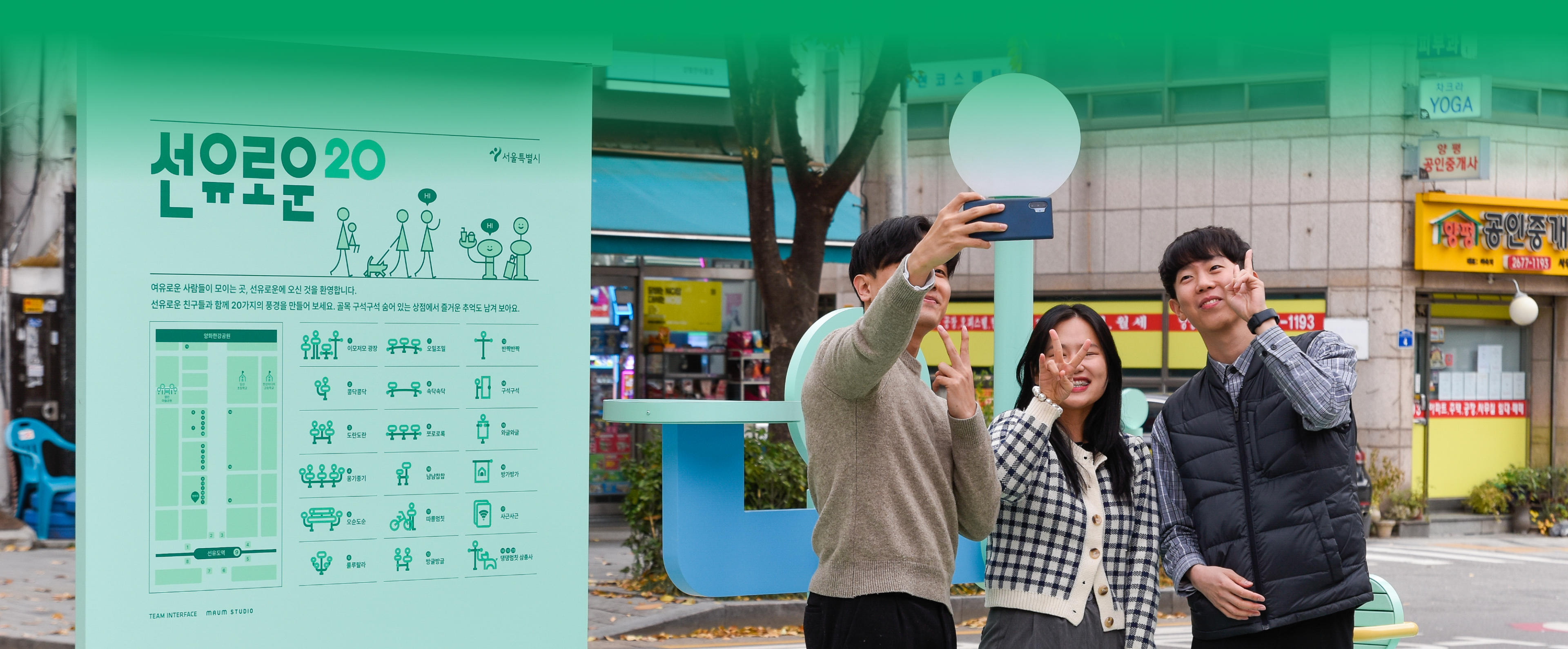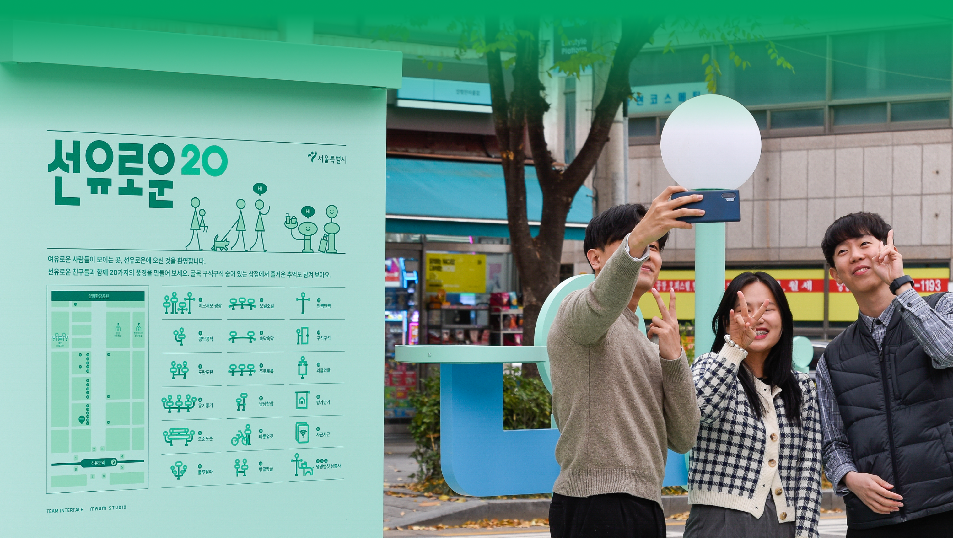 ‘선유로운20’은 천천히 걷다가 잠시 앉아 여유로운 시간을 즐기고, 골목 구석구석까지 상권을 누릴 수 있도록 개발된 디자인 솔루션입니다.