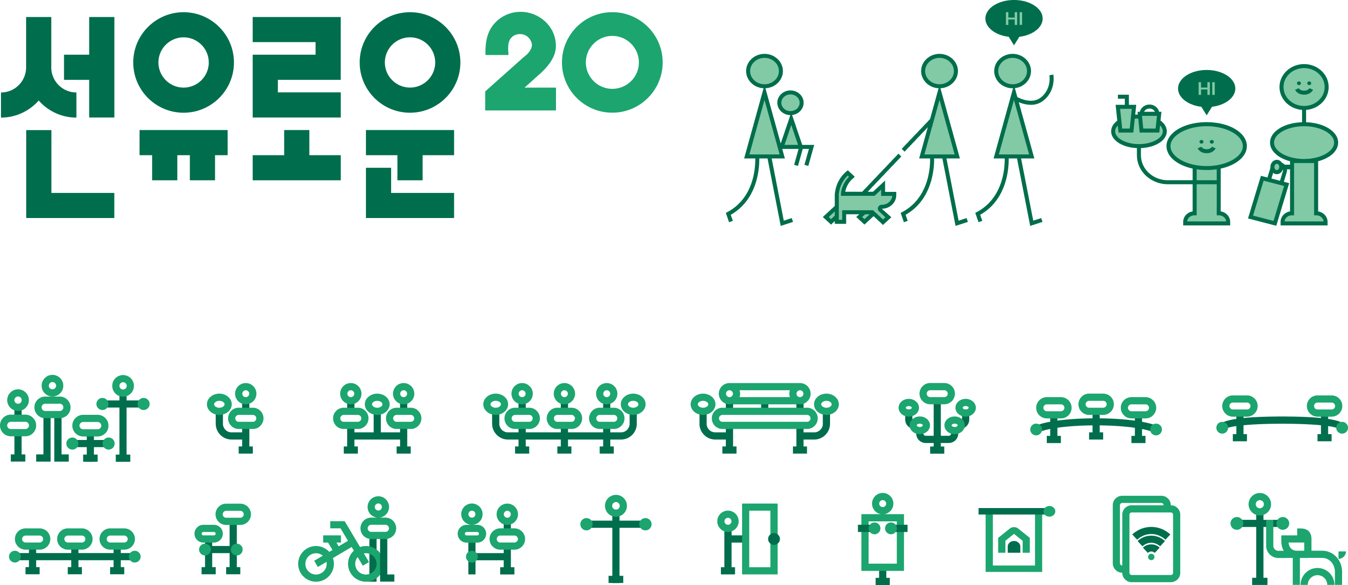 ‘선유로운20’은 천천히 걷다가 잠시 앉아 여유로운 시간을 즐기고, 골목 구석구석까지 상권을 누릴 수 있도록 개발된 디자인 솔루션입니다. 총 20종의 아이템으로 구성된 종합 솔루션을 통해 지역 방문객의 경험을 확대하고, 골목 유동인구를 늘려 상권활성화를 촉진합니다.