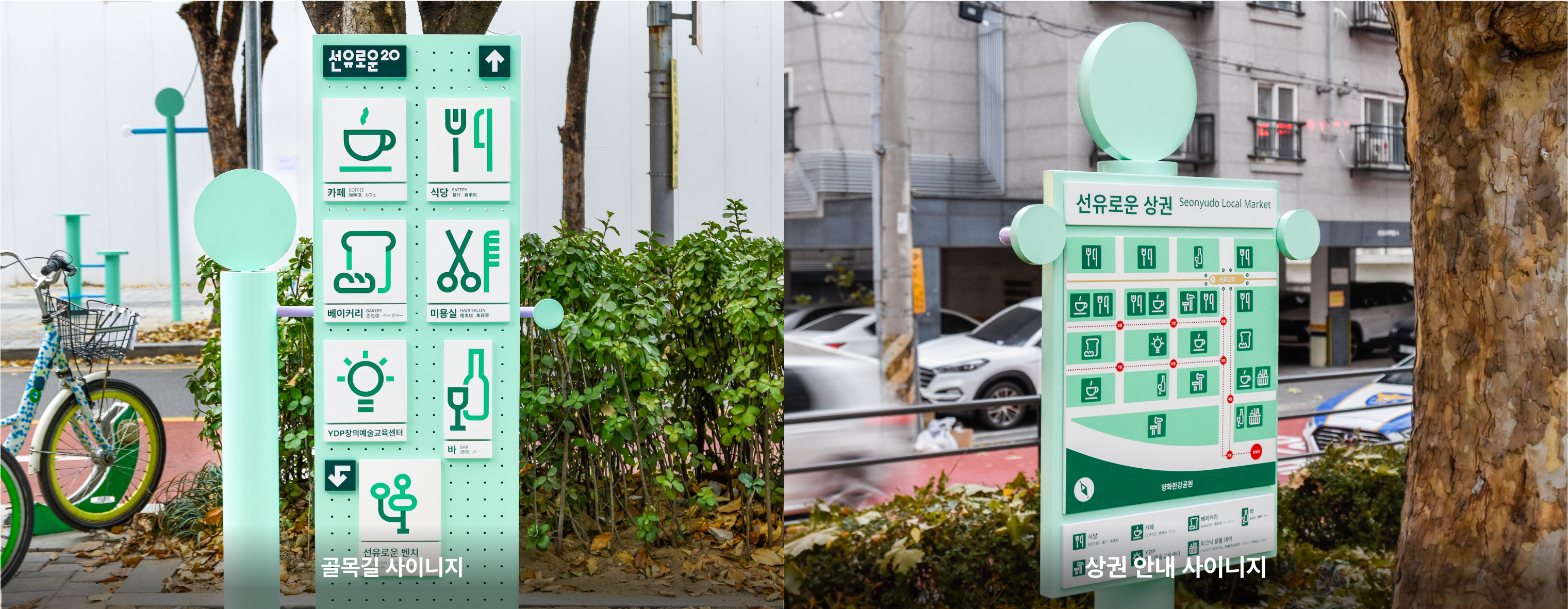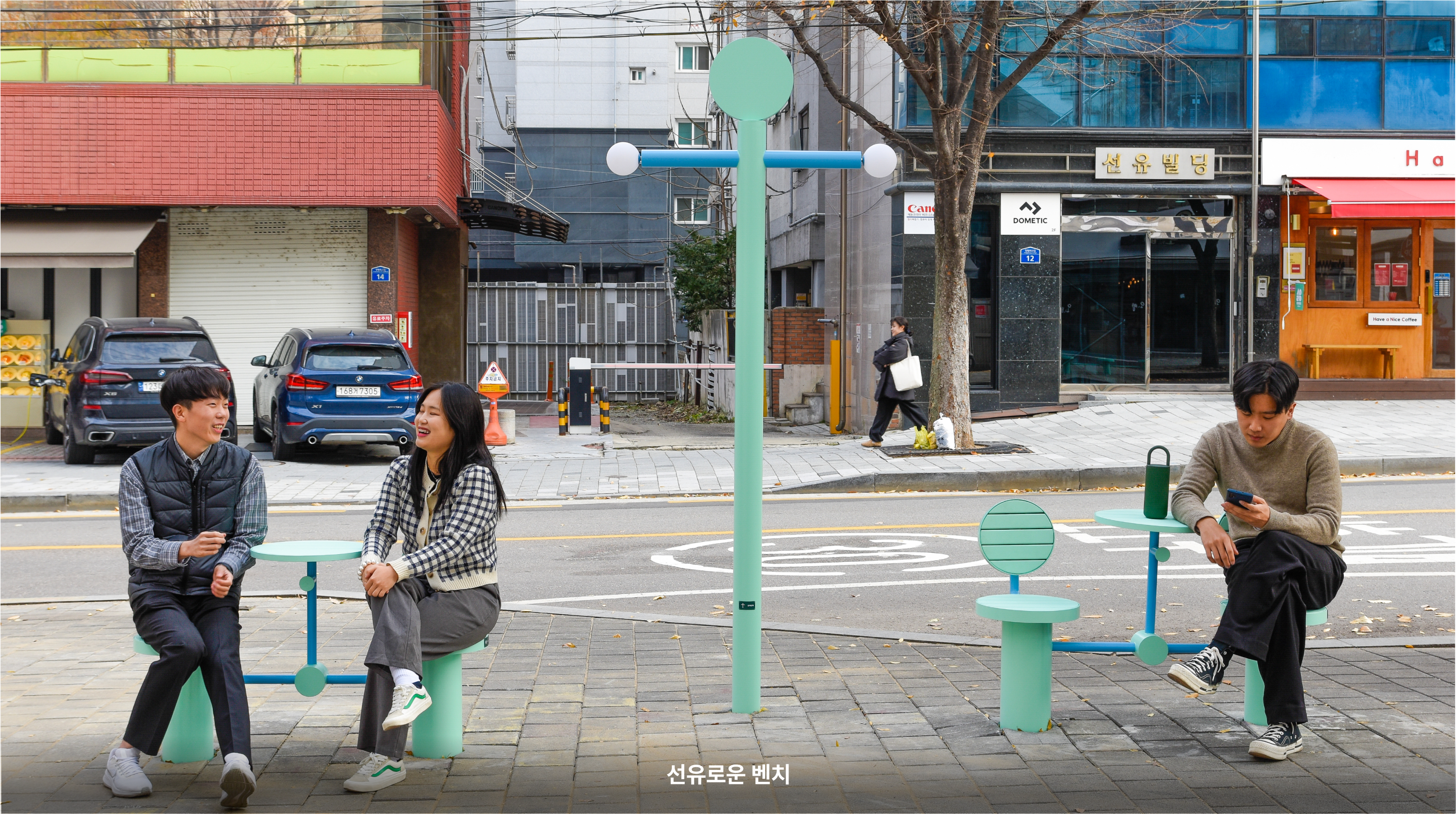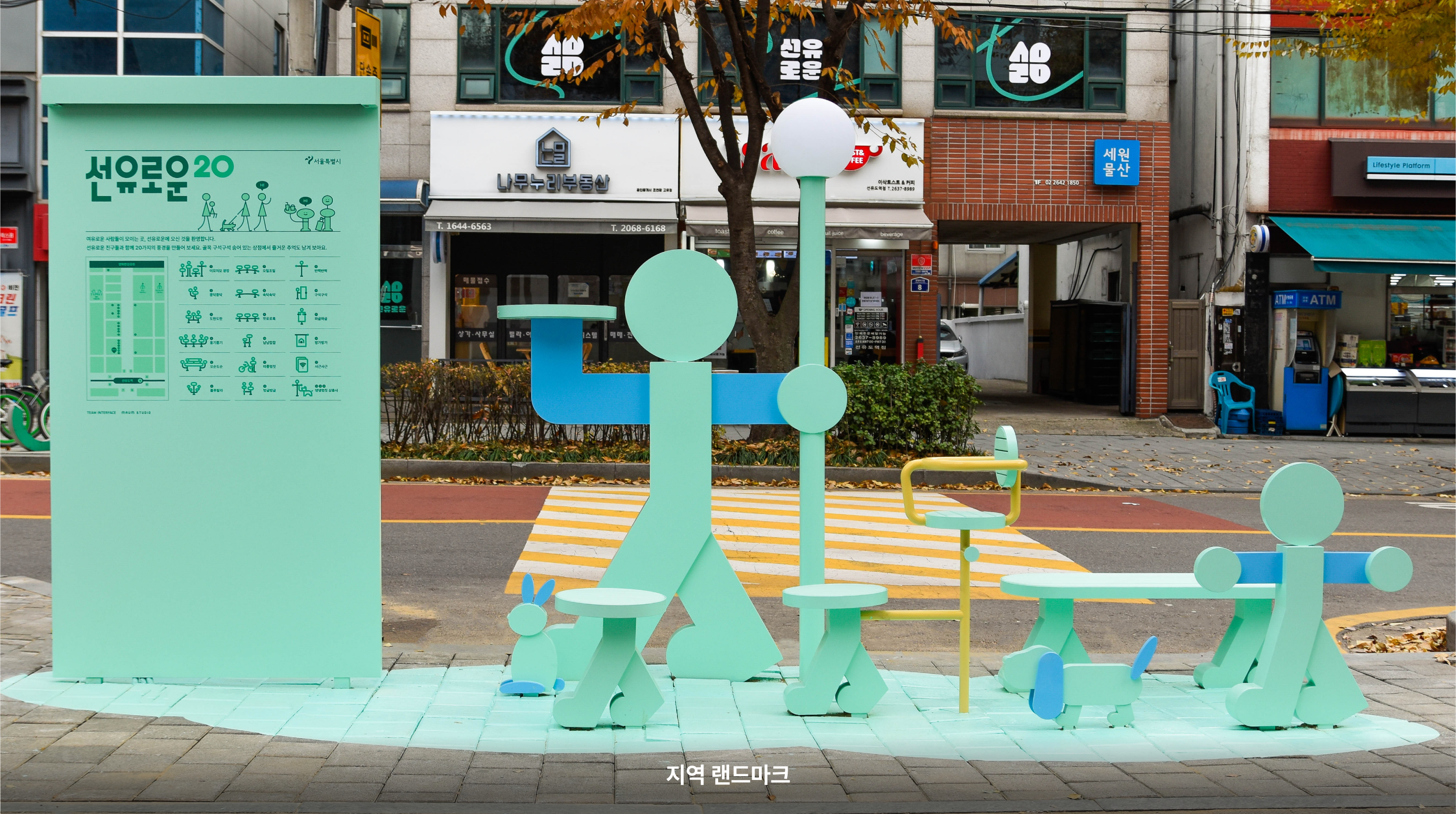‘선유로운20’은 천천히 걷다가 잠시 앉아 여유로운 시간을 즐기고, 골목 구석구석까지 상권을 누릴 수 있도록 개발된 디자인 솔루션입니다.