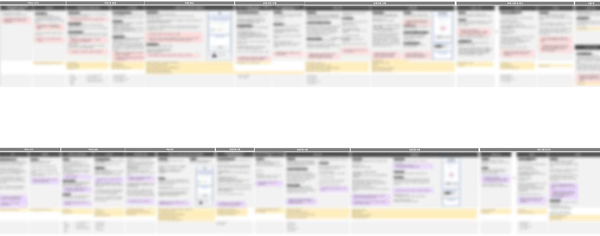 서비스 경험 단계 별 시나리오를 작성하고 이를 기준으로 서비스의 상세 UX 설계와 데이터 인터랙션 설계의 기준으로 삼을 수 있도록 하였습니다.