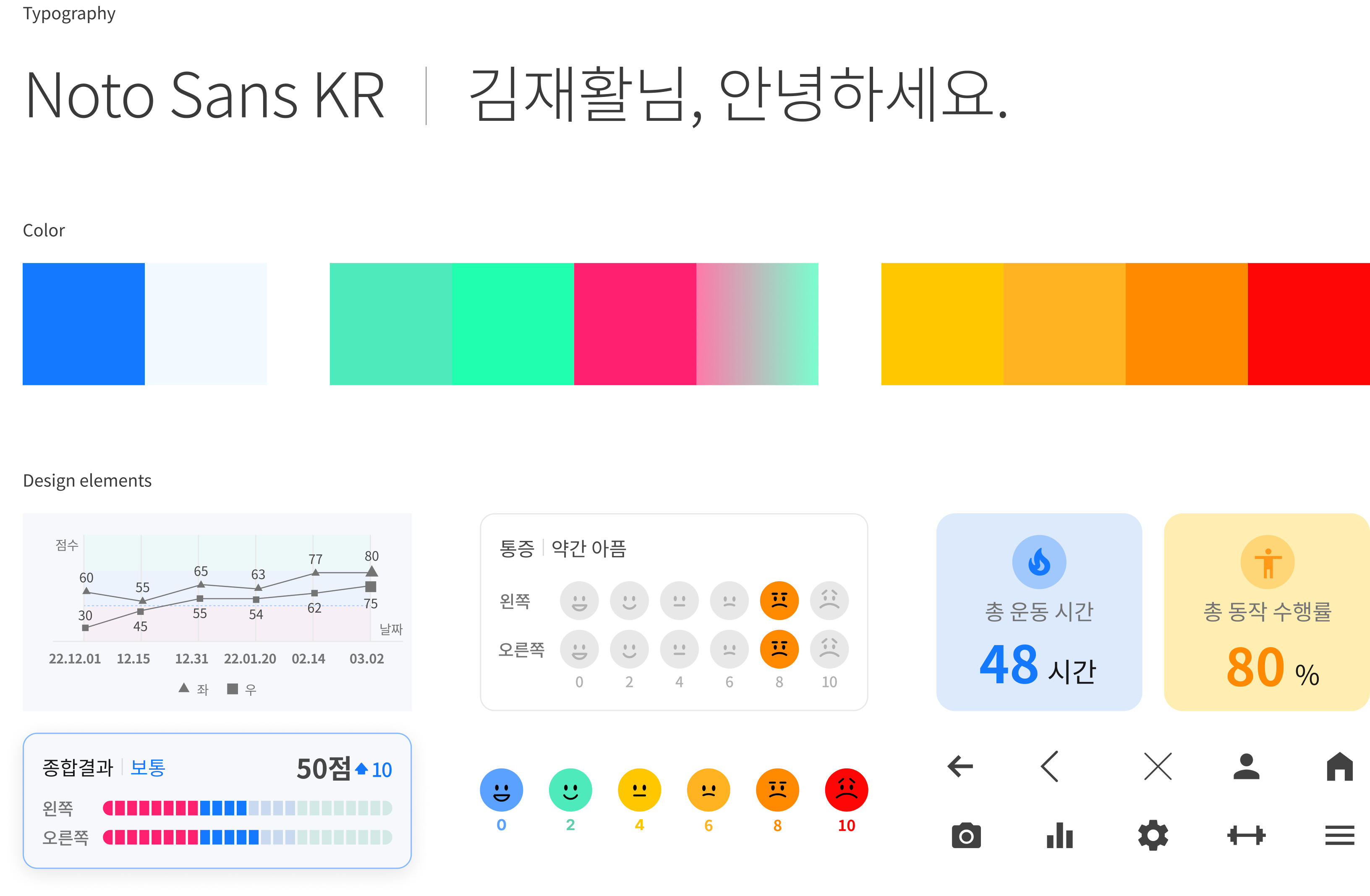 스마트거울 등 제공기기 내 재활훈련 콘텐츠 서비스 UI/UX 디자인 개발