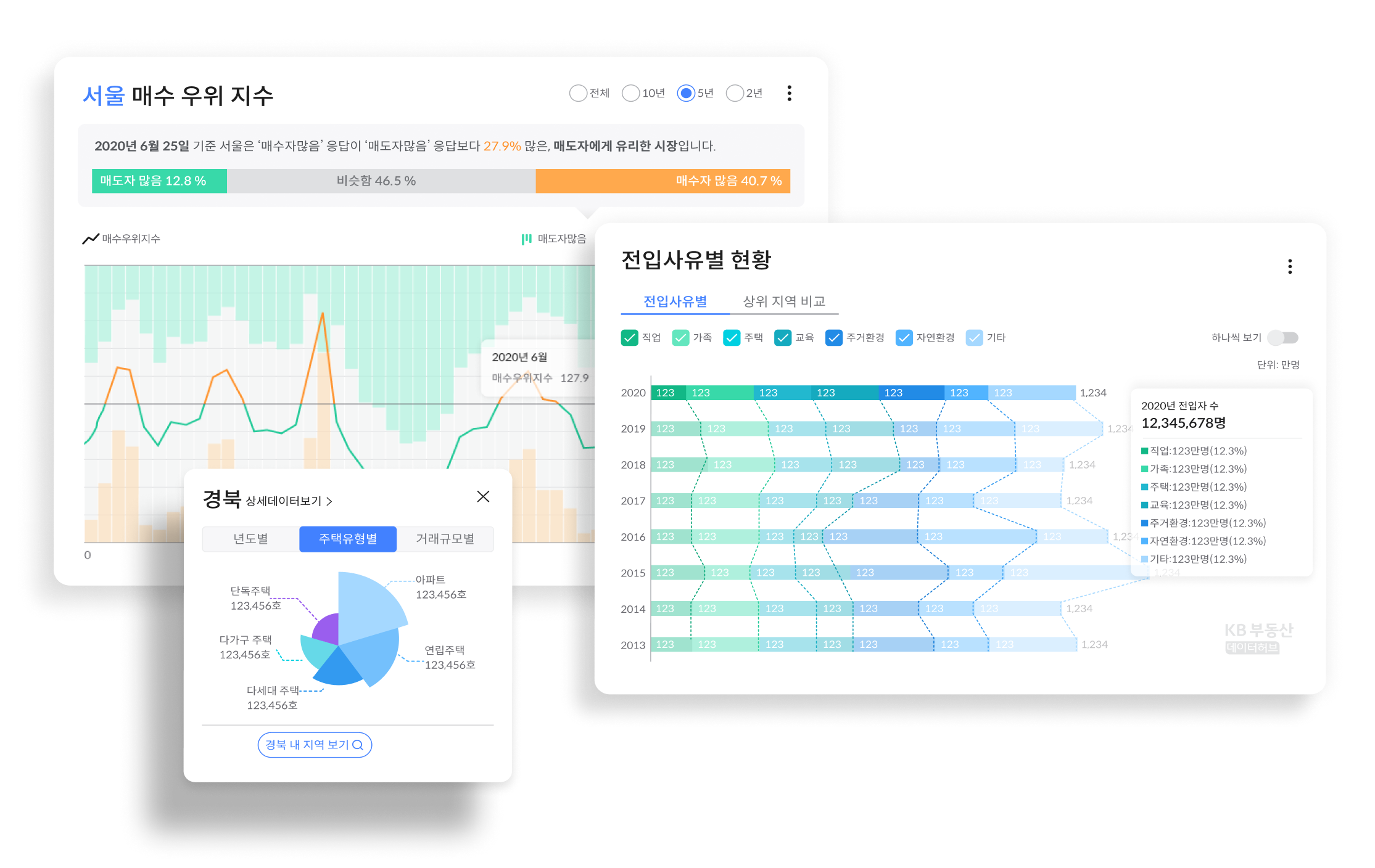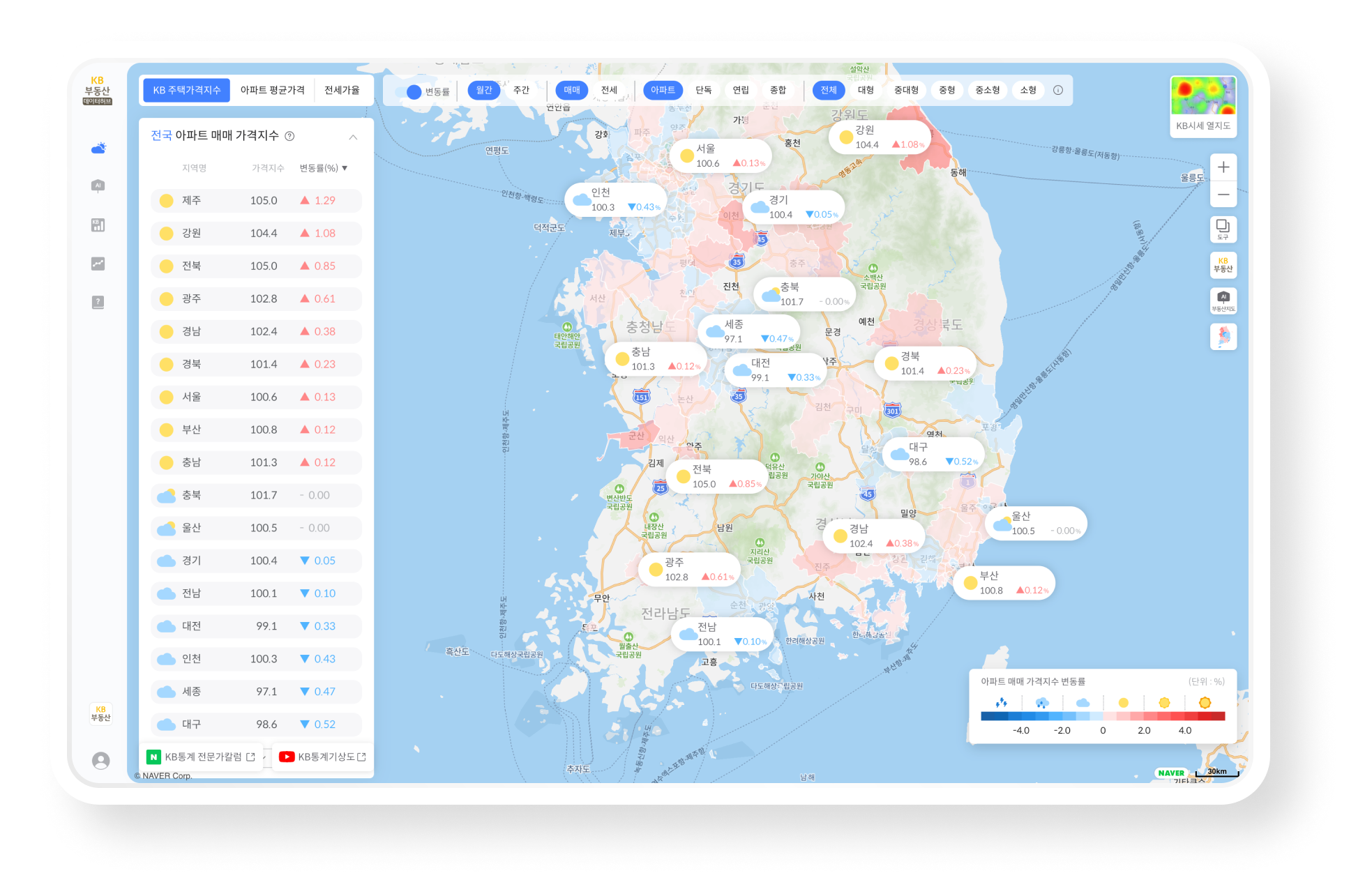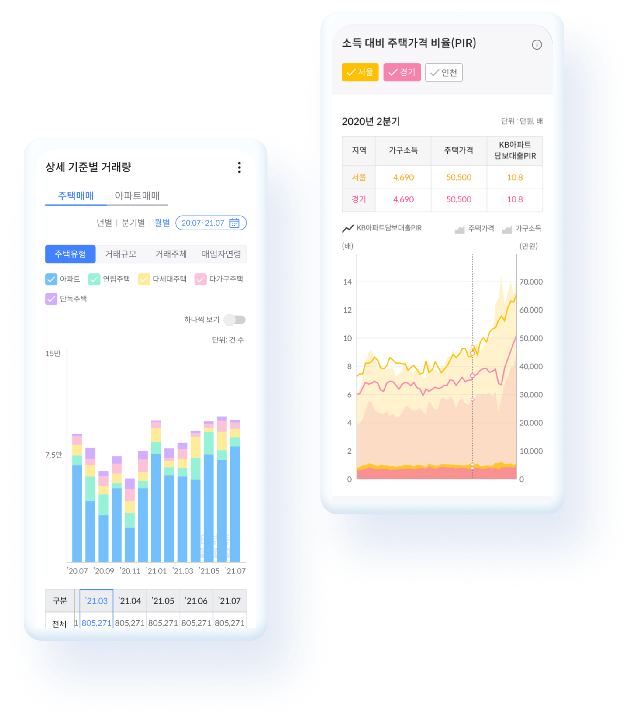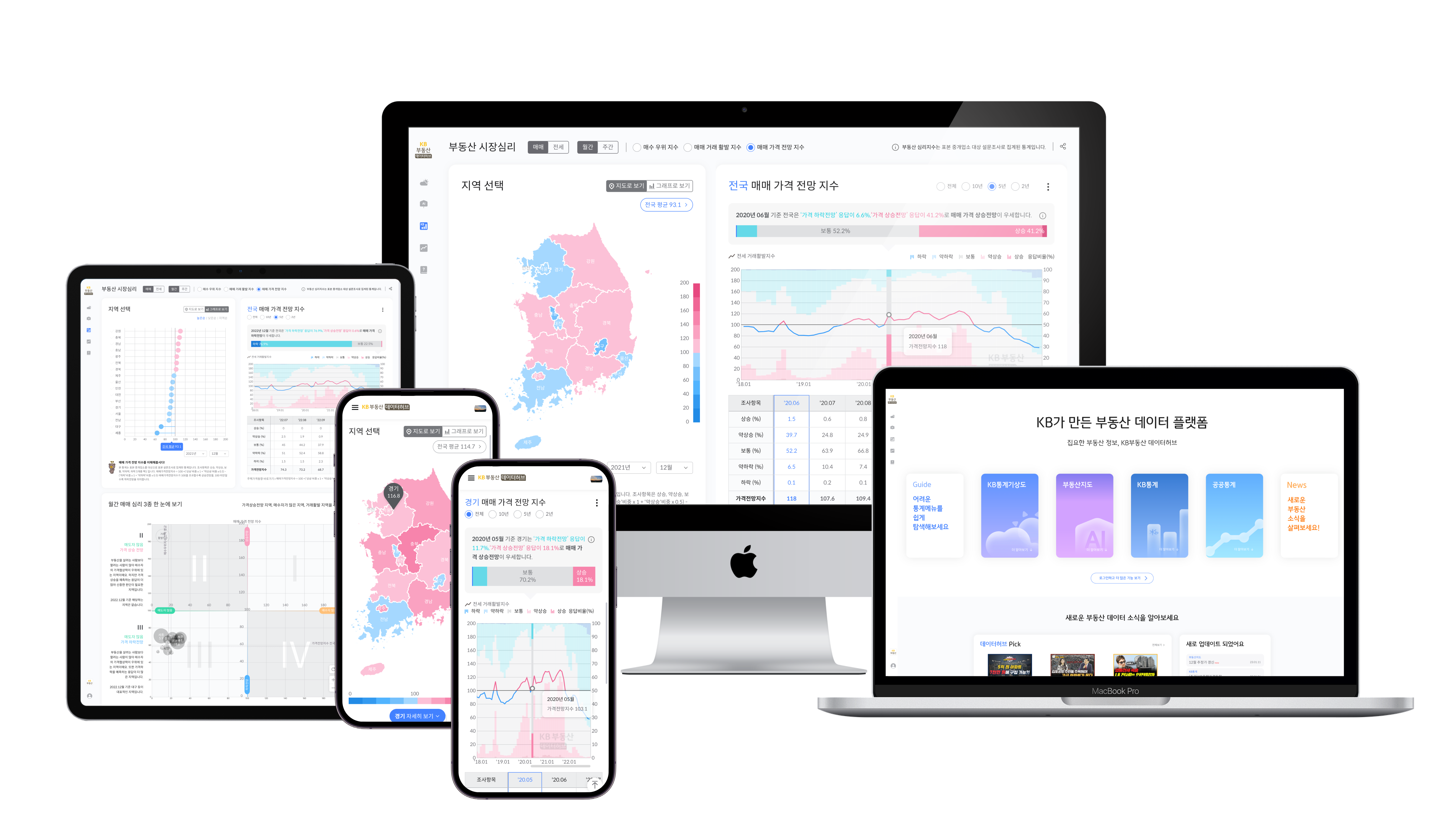 KB부동산 데이터허브는 사용자의 기기에 따른 최적화된 화면으로 유연하게 대응하여 일관된 사용성을 제공합니다.