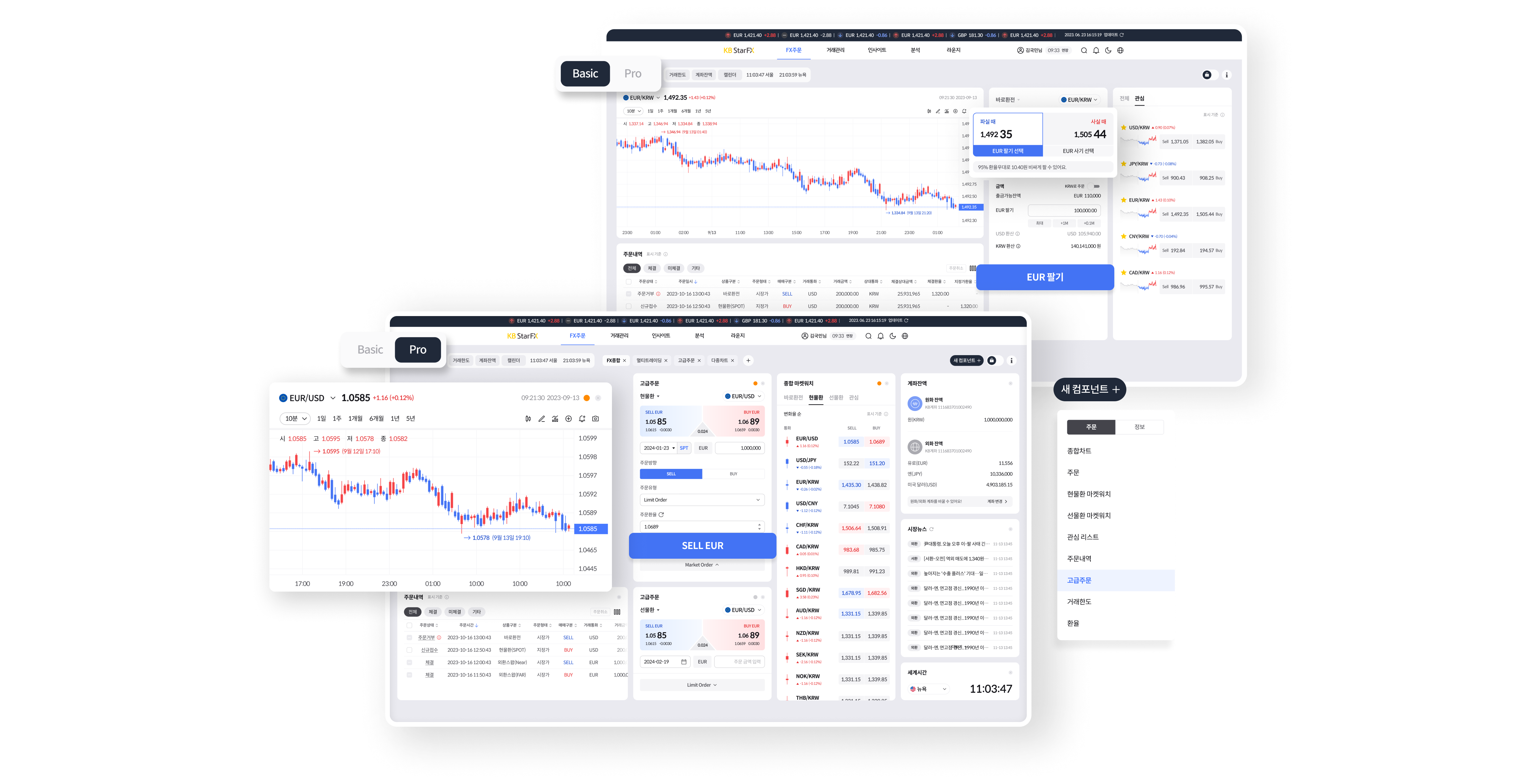 입문자에게는 쉽고 직관적인 UI를, 전문가에게는 고급 기능과 자유로운 화면 구성을 제공하여 외환 거래 경험을 극대화 시켜줍니다. 'Basic 모드'와 'Pro 모드'를 통해 사용자 맞춤형 인터페이스를 지원하며, 상단 툴 UI를 활용해 모드 전환과 기능 활용을 더욱 직관적으로 설계하였습니다.